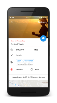 Mit der App kannst du ganz einfach selber ein Event erstellen und es mit der Community teilen.
