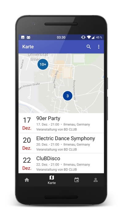 Finde mit der App interessante Veranstaltungen in deiner Nähe.